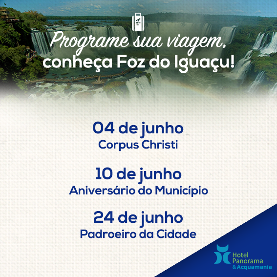 Junho promete! São feriados para você aproveitar e conhecer as paisagens do Destino Iguaçu! Preparamos um calendário para você imprimir e deixar na sua agenda!